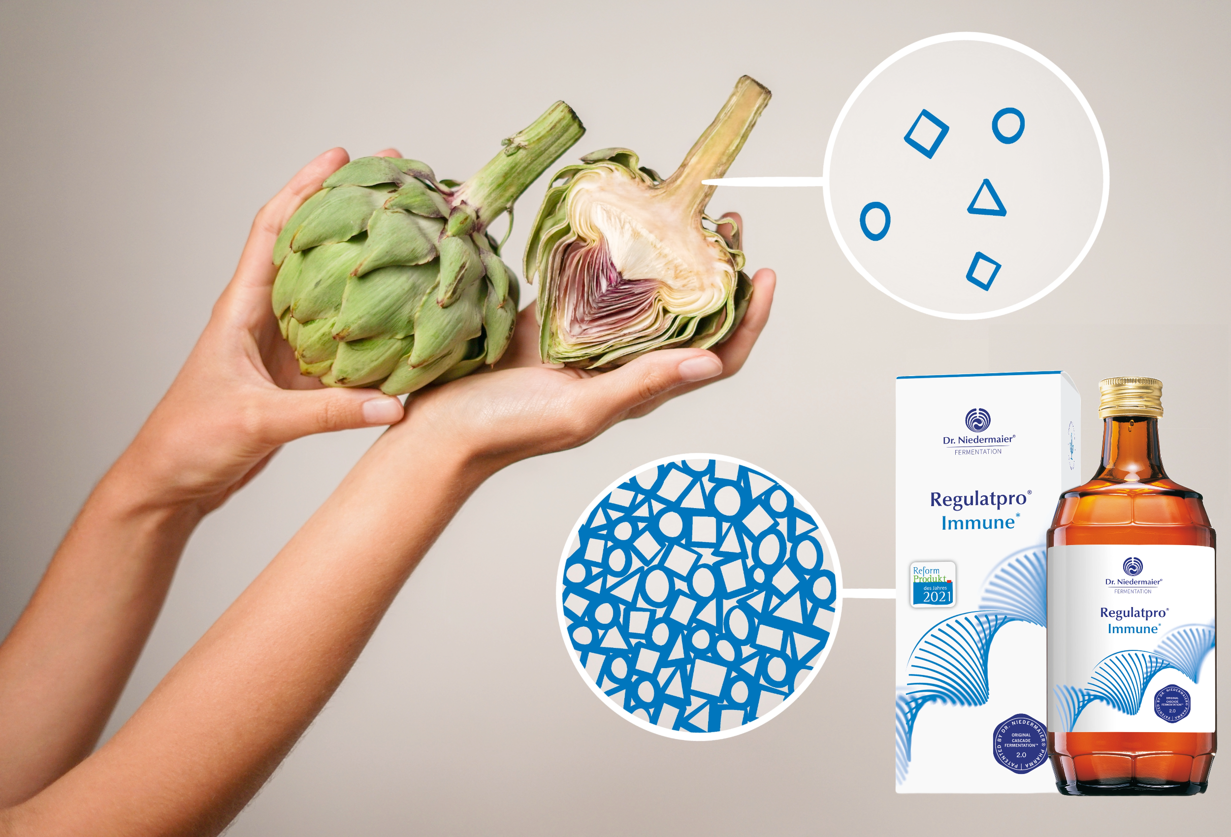 Durch die Kaskadenfermentation 2.0 werden die in den pflanzlichen Zutaten enthaltenen Enzyme und Proteine bis auf die Molekülebene aufgespalten. Dadurch werden Aminosäuren und kleine Peptide gebildet, die vom Körper wiederum für unterschiedlichste Reaktionen verwendet werden können.
