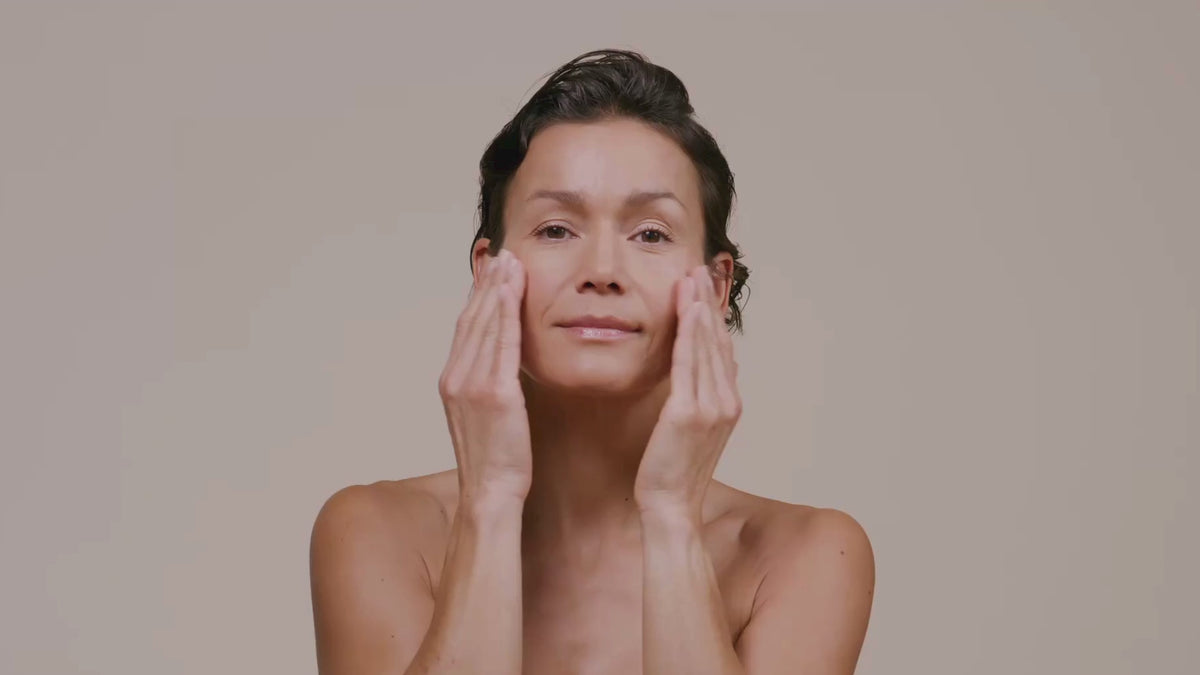1-2 Pumpstöße aus Gesicht, Hals und Dekolleté auftragen und verteilen. Anschließend leicht einklopfen.​